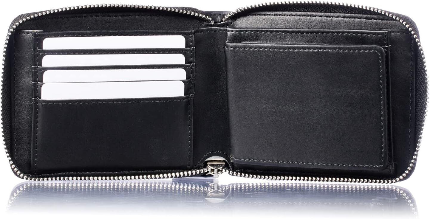 ヴォイス メンズ カーボンレザー 二つ折り 財布 厚くならない ラウンドファスナー 使いやすい BOX型小銭入